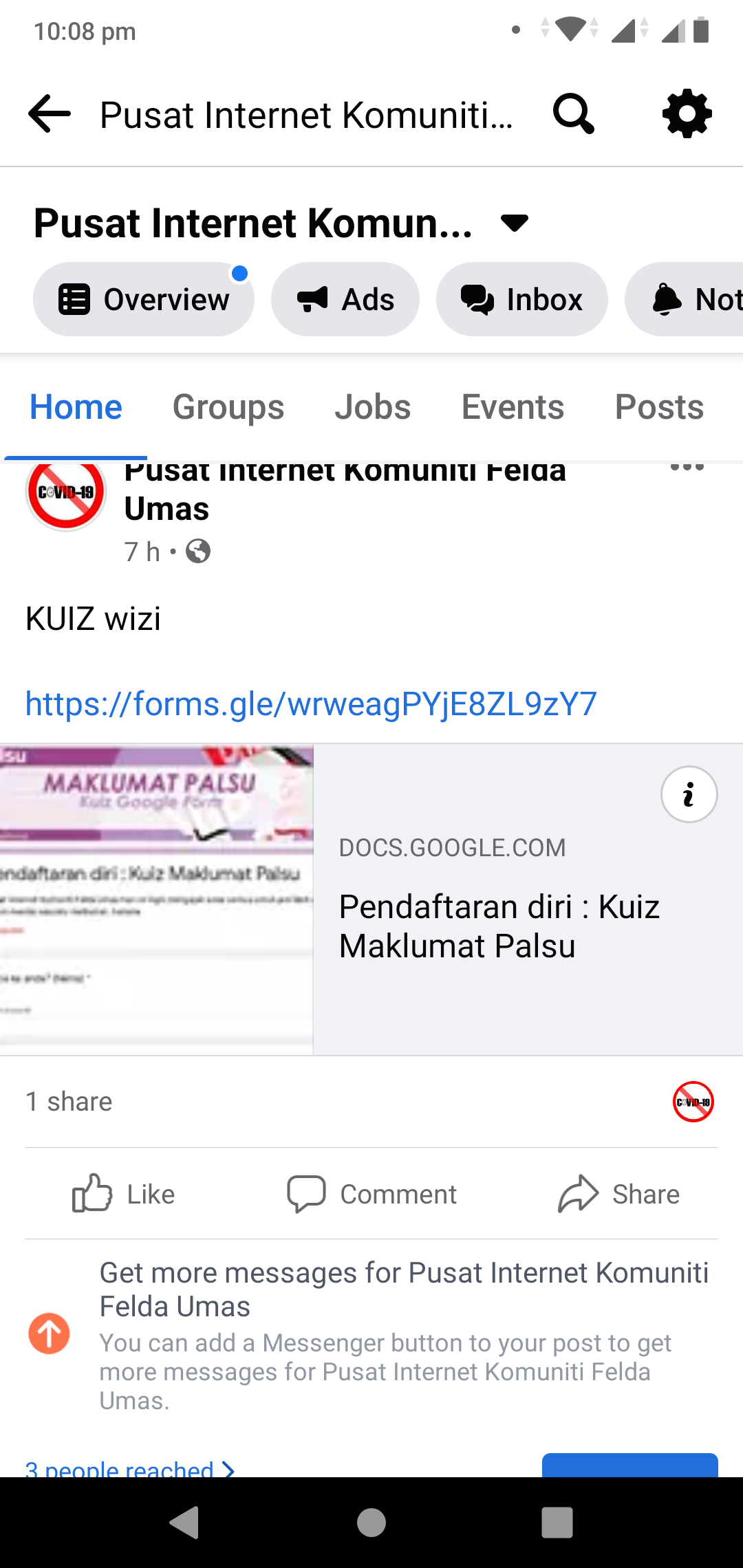 Lokasi : Facebook Page Pusat Internet Komuniti Felda Umas